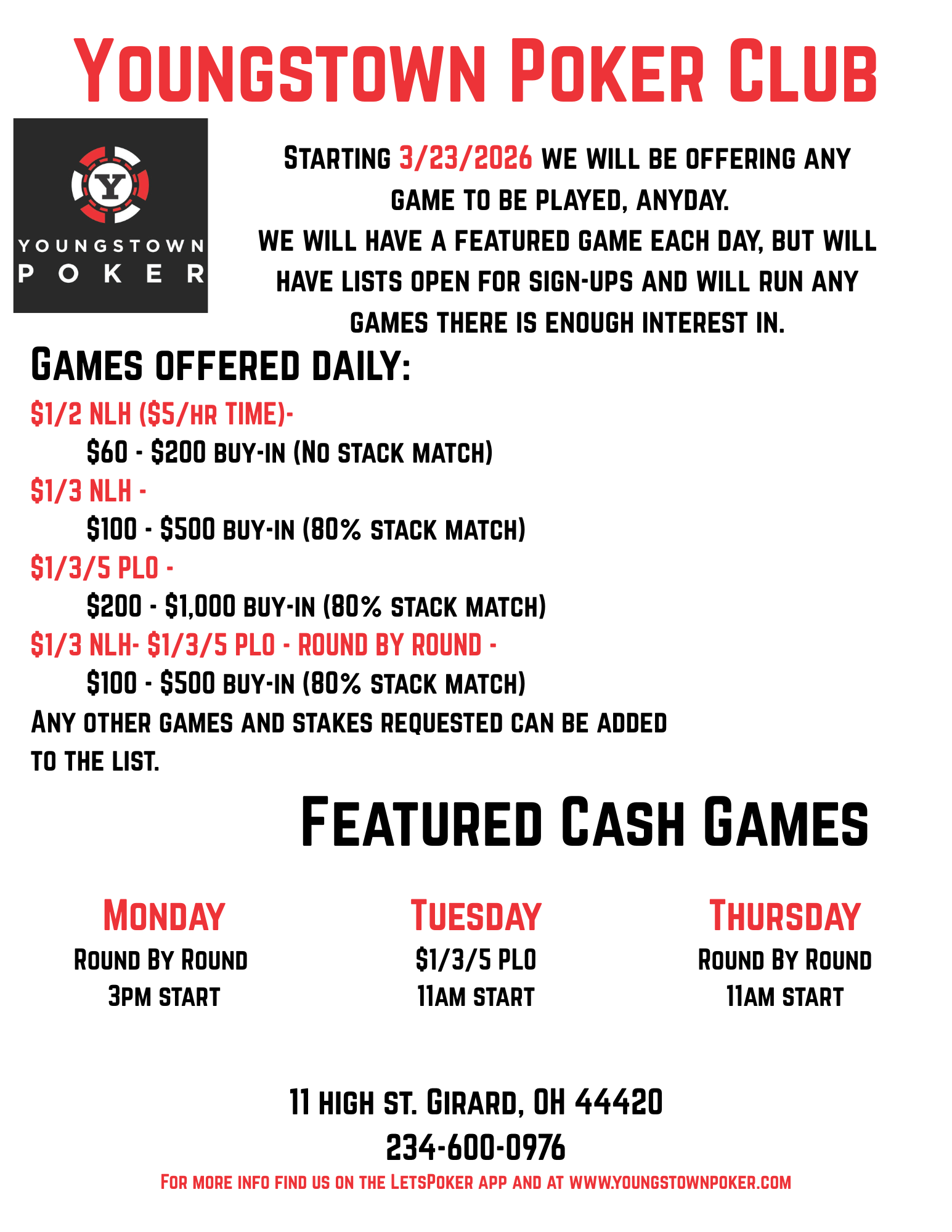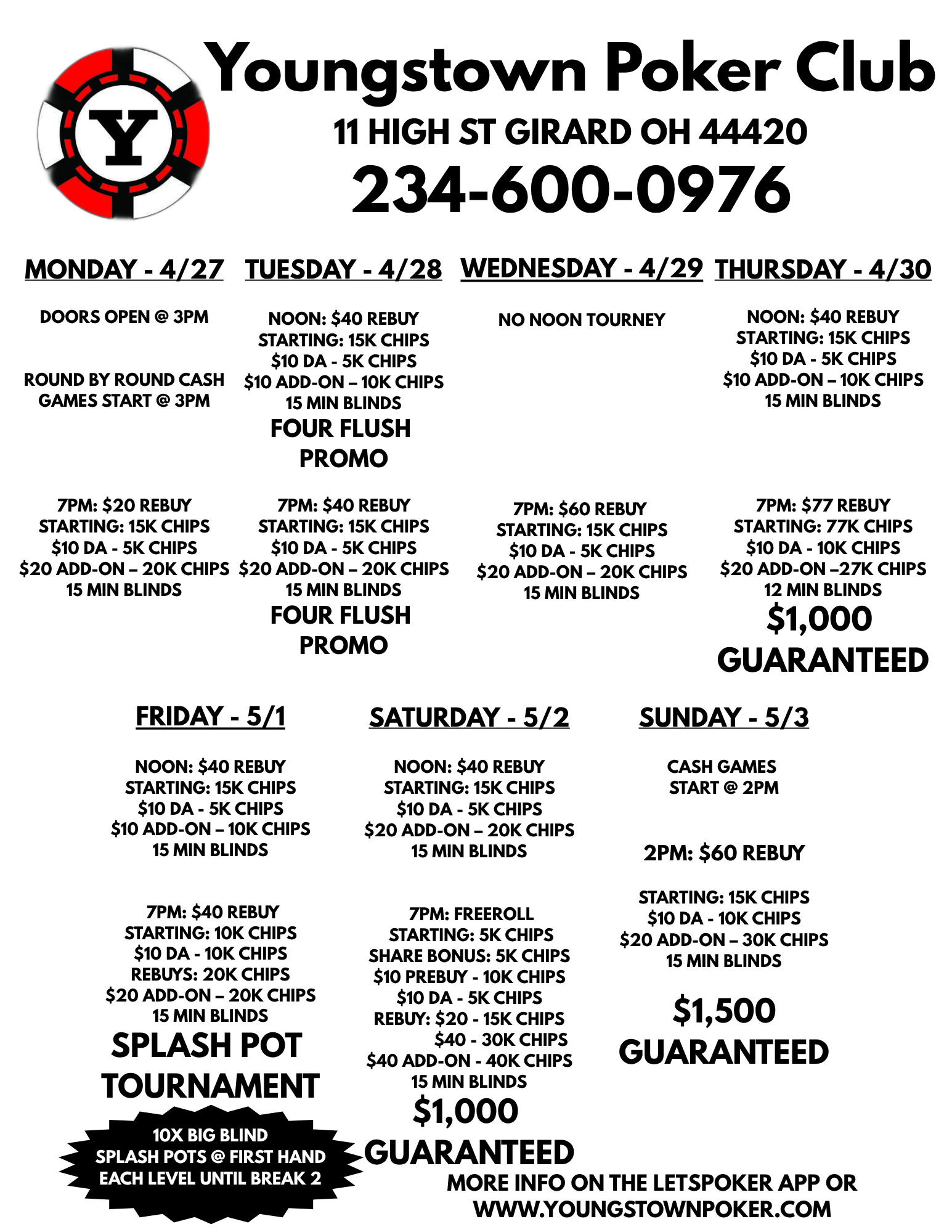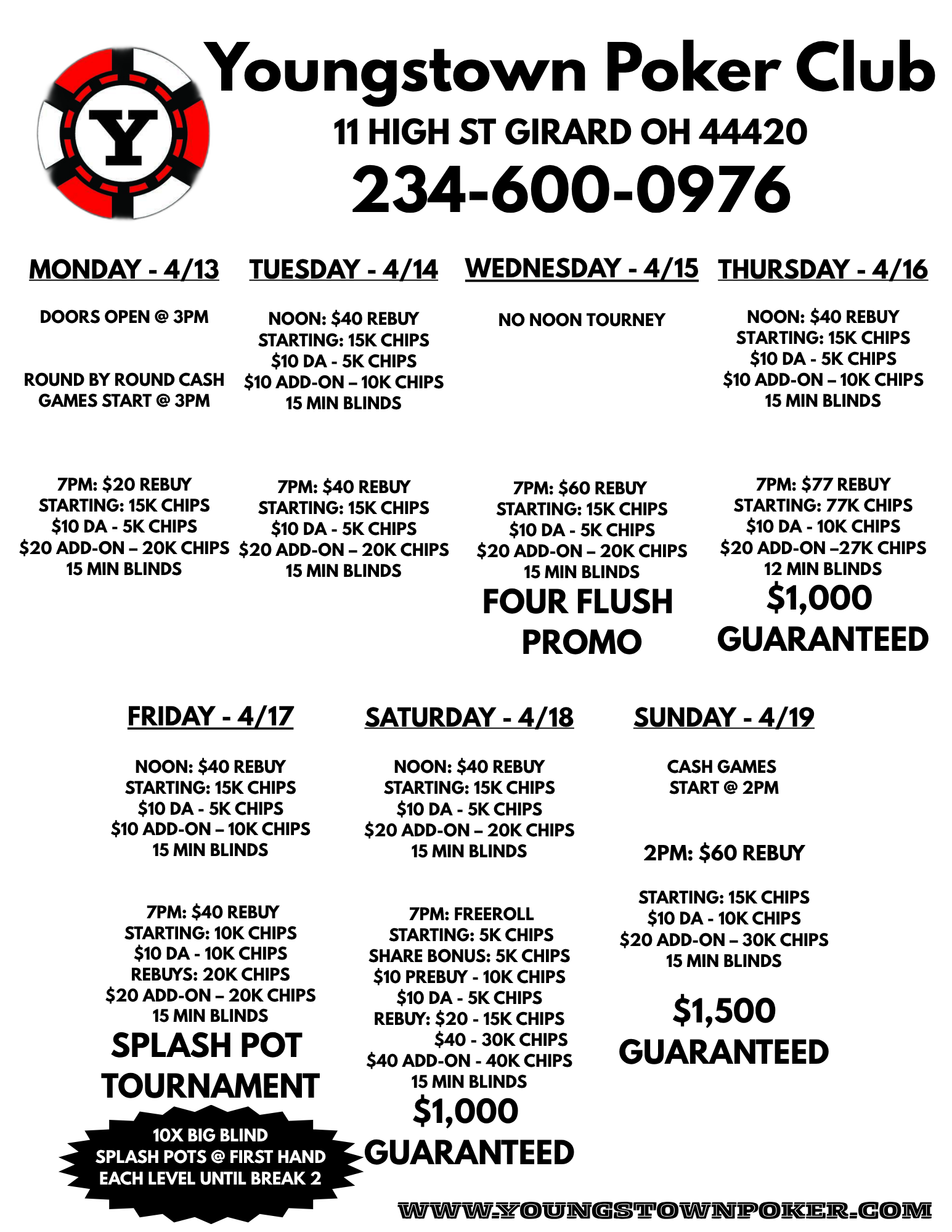 Youngstown Poker is the area's original poker club, founded in 2003, supporting the community, local businesses, and non-profit organizations.