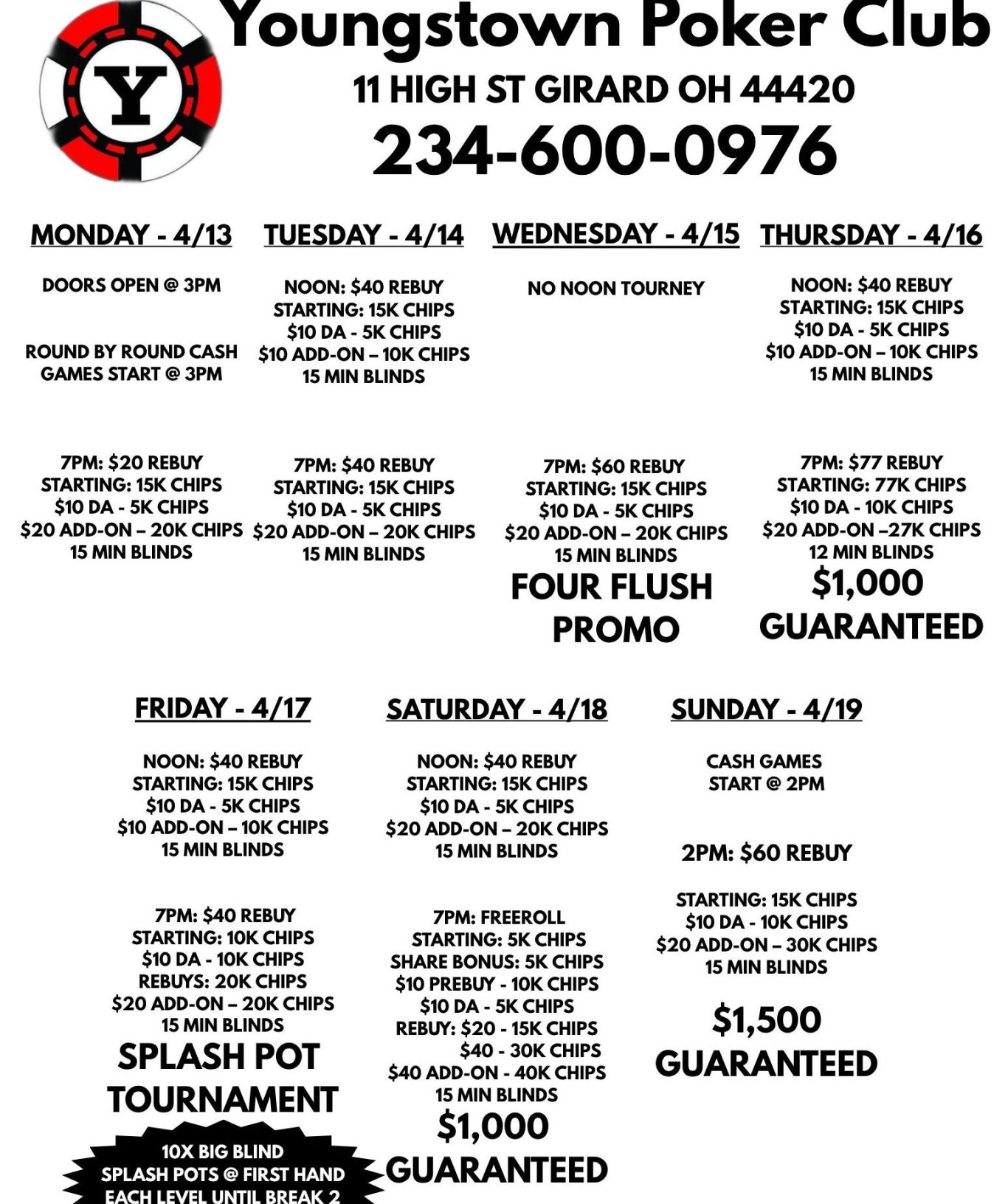 Youngstown Poker is the area's original poker club, founded in 2003, supporting the community, local businesses, and non-profit organizations.